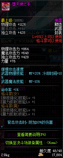 | 65 | 堕天使之手 | *Lv65~71普通地下城怪物掉落 *在加百利的神秘商店购买 |