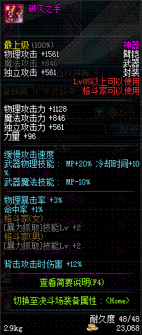 | 85 | 破灭之手 | *Lv85~91普通地下城怪物掉落 *在加百利的神秘商店购买 |
