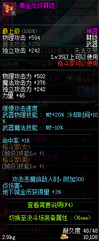 | 35 | 黄金龙纹臂铠 | *黄金王维迪尔 掉落(地下城: 黄金矿洞) *在NPC克伦特的物品店购买(阿拉德陨石 ×150) |