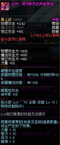 | 75 | 神谕之右手 | *尼尔巴斯·格拉西亚 掉落(地下城: 暗黑圣战) *在NPC西岚的物品店购买(银色陨石×510) |