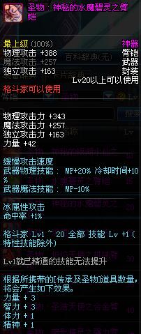 | 20 | 圣物 : 神秘的水魔碧灵之臂铠 | *Lv19~26普通地下城怪物掉落 | ||