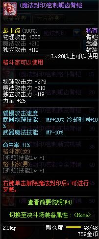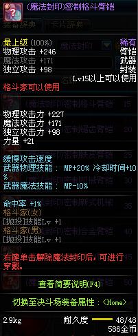 | 15 | (魔法封印)密制格斗臂铠 | *Lv13~21普通地下城怪物掉落 *完成[专职贺礼]任务 |