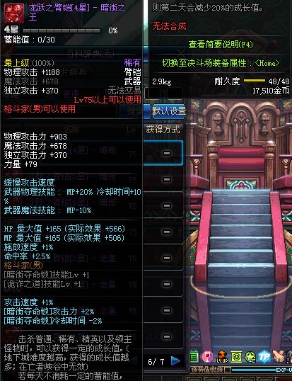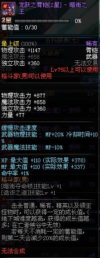 | 75 | 龙跃之臂铠[3星] - 暗街之王 | *完成二次觉醒任务后可以从NPC小铁柱处获得此道具。 | ||