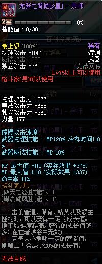 | 75 | 龙跃之臂铠[1星] - 宗师 | *完成二次觉醒任务后可以从NPC小铁柱处获得此道具。 | ||