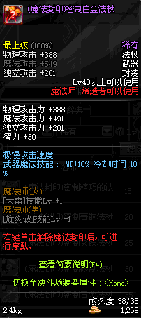 | 35 | (魔法封印)密制黄金法杖 | *Lv34~41普通地下城怪物掉落 |