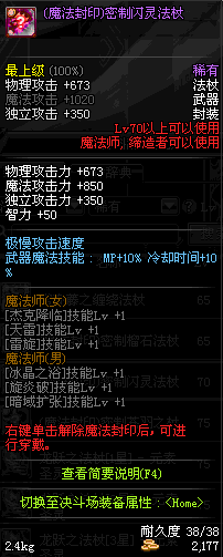 | 70 | (魔法封印)密制闪灵法杖 | *Lv70~76普通地下城怪物掉落 *完成[发狂的乌塔拉]任务 *使用Lv70~76怪物掉落的设计图进行制作 |