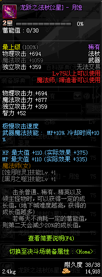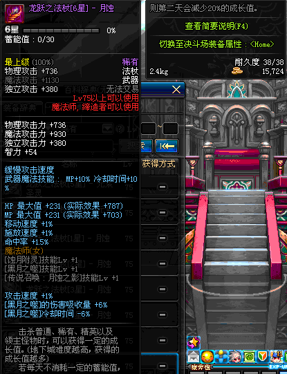 | 75 | 龙跃之法杖[6星] – 月蚀 | *完成二次觉醒任务后可以从NPC小铁柱处获得此道具。 | ||