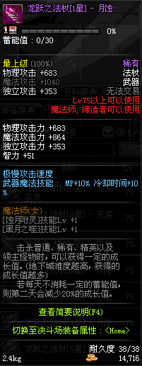 | 75 | 龙跃之法杖[1星] – 月蚀 | *完成二次觉醒任务后可以从NPC小铁柱处获得此道具。 | ||