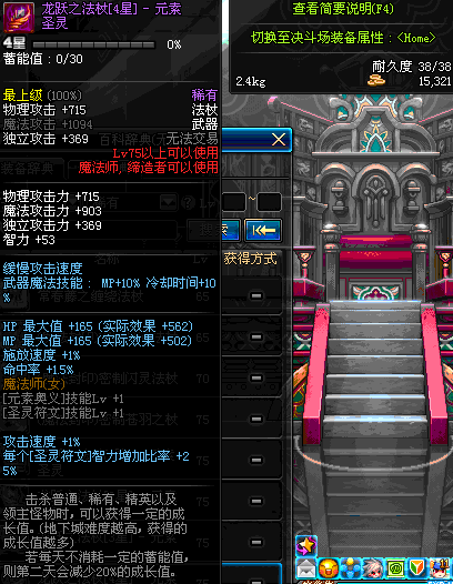 | 75 | 龙跃之法杖[4星] – 元素圣灵 | *完成二次觉醒任务后可以从NPC小铁柱处获得此道具。 | ||