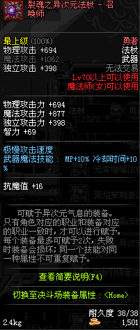 | 75 | 灾难召唤者法杖 | *变异召唤师霍姆斯 掉落(在时空之门地区的深渊地下城出没。) | ||