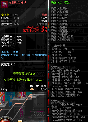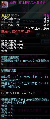 | 45 | 圣物 : 玄冰精灵之水晶法杖 | *Lv45~51普通地下城怪物掉落 |