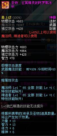 | 65 | 圣物 : 玄冥精灵的阿罗那法杖 | *Lv65~71普通地下城怪物掉落 |