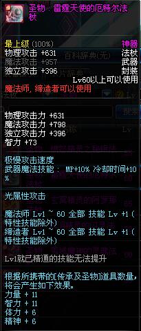 | 60 | 圣物 : 雷霆天使的厄特尔法杖 | *Lv58~66普通地下城怪物掉落 |