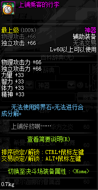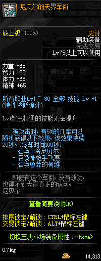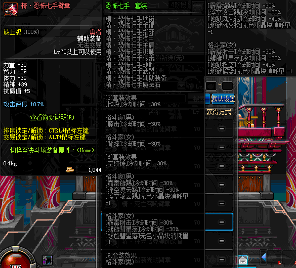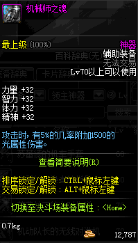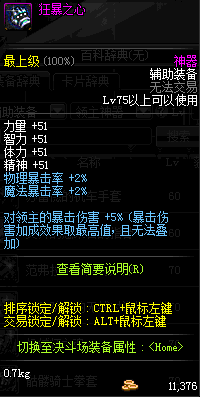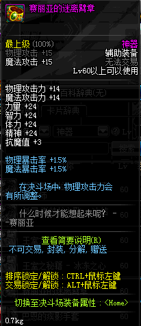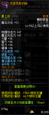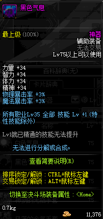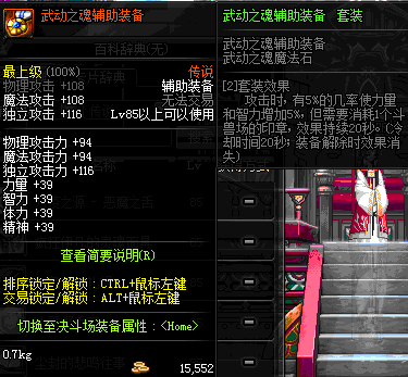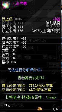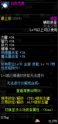 | 辅助装备: | 全职业 鬼剑士 女鬼剑 女格斗 男格斗 神枪手 女枪手 魔法师 男法师 圣职者 暗夜使者 守护者 |