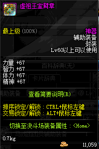 | 60 | 虚祖王室臂章 | *Lv58~66普通地下城怪物掉落 *在加百利的神秘商店购买 |