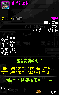 | 60 | 泰达的酒杯 | *Lv58~66普通地下城怪物掉落 *在加百利的神秘商店购买 |
