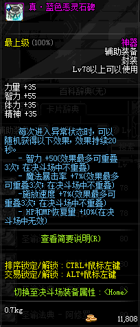 | 78 | 真 · 蓝色恶灵石碑 | *设计图(70LV以上普通地下城 登场的NPC加百利 出售) *蓝色恶灵石碑 → 用远古神器装备进化书升级(NPC船长鲁特 出售) |