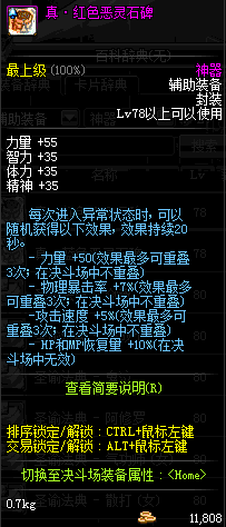 | 78 | 真 · 红色恶灵石碑 | *设计图(70LV以上普通地下城 登场的NPC加百利 出售) *红色恶灵石碑 → 用远古神器装备进化书升级(NPC船长鲁特 出售) |