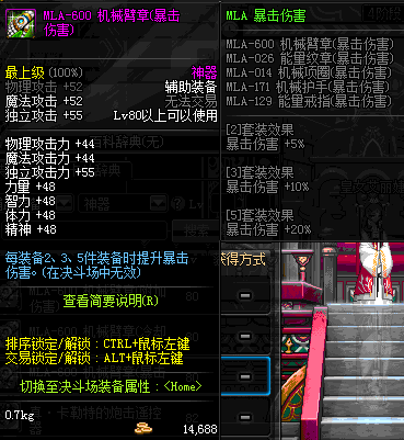 | 80 | MLA-600机械臂章(暴击伤害) | *在NPC吟荷的物品店购买 | ||