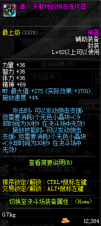 | 82 | 真 · 卡勒特的炮击遥控器 | *设计图(70LV以上普通地下城 登场的NPC加百利 出售) *卡勒特的炮击遥控器 → 用远古神器装备进化书升级(NPC船长鲁特 出售) |