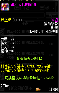 | 85 | 战斗大师的佩饰 | *Lv85~91普通地下城怪物掉落 *在加百利的神秘商店购买 |