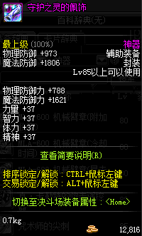 | 85 | 守护之灵的佩饰 | *Lv85~91普通地下城怪物掉落 *在加百利的神秘商店购买 |