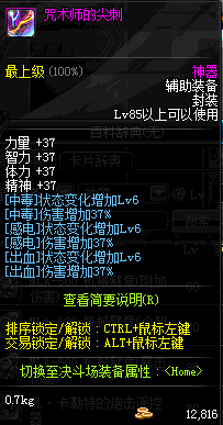 | 85 | 咒术师的尖刺 | *Lv85~91普通地下城怪物掉落 *在加百利的神秘商店购买 |