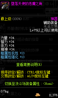 | 75 | 堕落天使的恶魔之角 | *尼尔巴斯·格拉西亚 掉落(暗黑圣战) *在NPC西岚的物品店购买(银色陨石×340) |