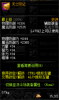 | 70 | 天之印记 | *Lv69~76深渊地下城怪物掉落 *攻坚队完成安徒恩团队模式的[讨伐安徒恩]任务时,获得的奖励。 |