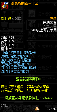 | 80 | 路易斯的毒王手套 | *Lv79~86深渊地下城怪物掉落 *攻坚队完成安徒恩团队模式的[讨伐安徒恩]任务时,获得的奖励。 |