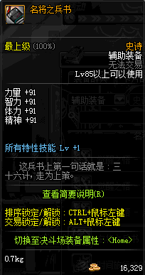 | 85 | 名将之兵书 | *Lv84~91深渊地下城怪物掉落 *攻坚队完成安徒恩团队模式的[消灭安徒恩]任务时,获得的奖励。 |