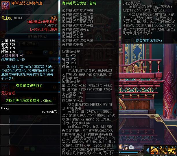 | 85 | 海神谜咒之深海气息 | *昨日之巴斯顿 掉落 (在远古地下城里出没。) *从NPC鲁特的物品店出售的[海神谜咒特殊装备礼盒]中获得 |