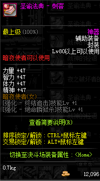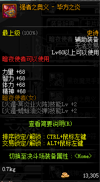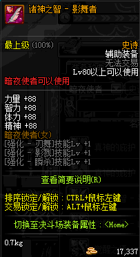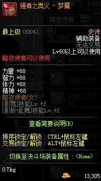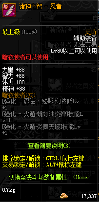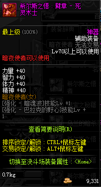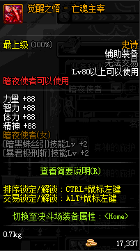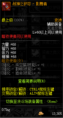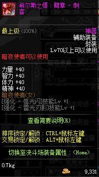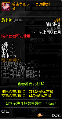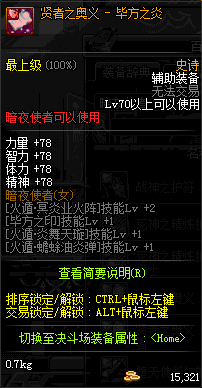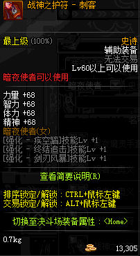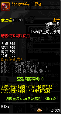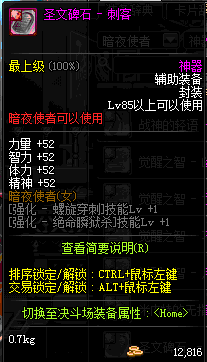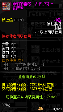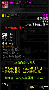 | 辅助装备: | 全职业 鬼剑士 女鬼剑 女格斗 男格斗 神枪手 女枪手 魔法师 男法师 圣职者 暗夜使者 守护者 |