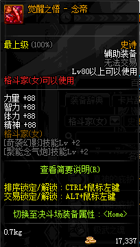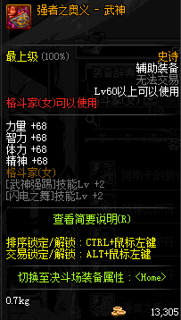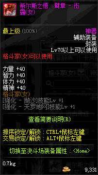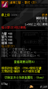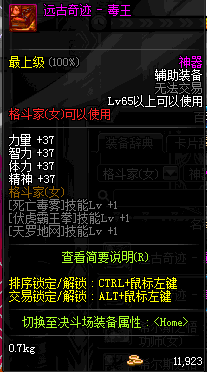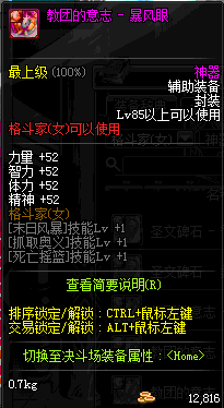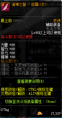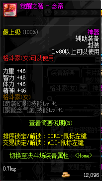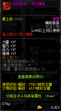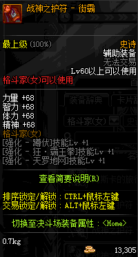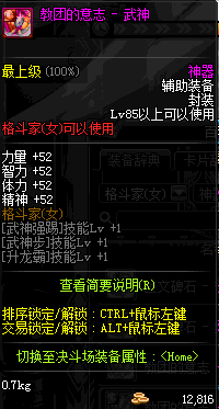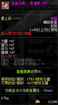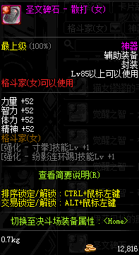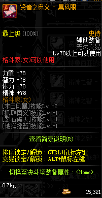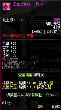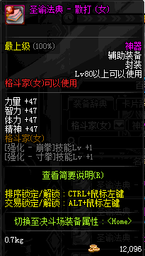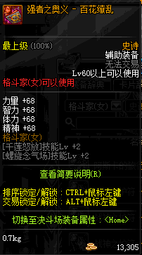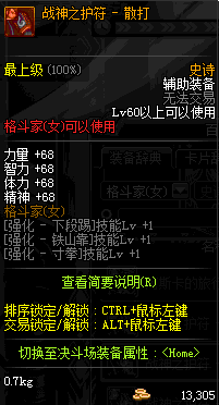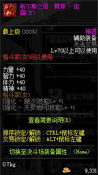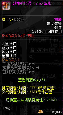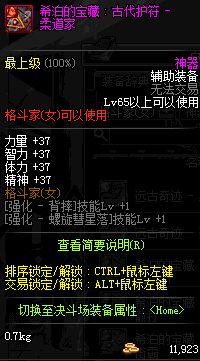 | 辅助装备: | 全职业 鬼剑士 女鬼剑 女格斗 男格斗 神枪手 女枪手 魔法师 男法师 圣职者 暗夜使者 守护者 |