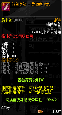 | 史诗 辅助装备- 格斗家(女) | ||||