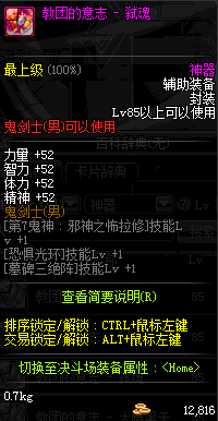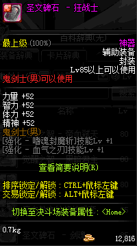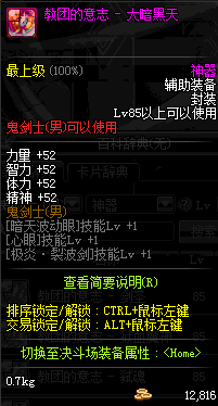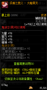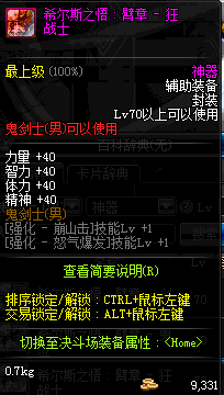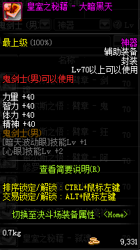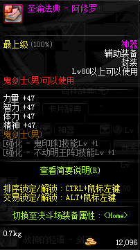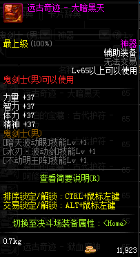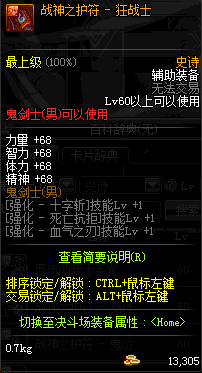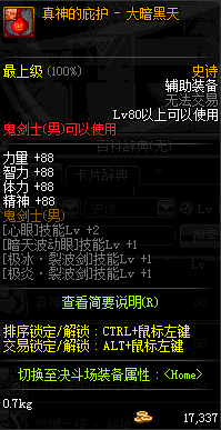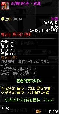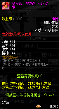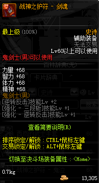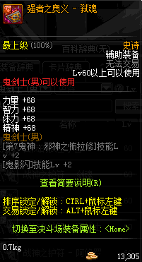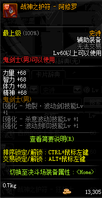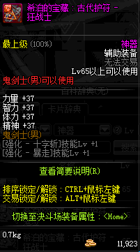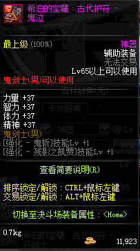 | 辅助装备: | 全职业 鬼剑士 女鬼剑 女格斗 男格斗 神枪手 女枪手 魔法师 男法师 圣职者 暗夜使者 守护者 |