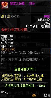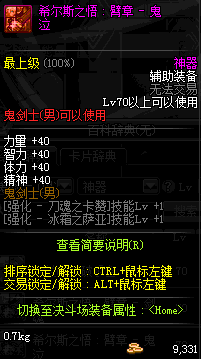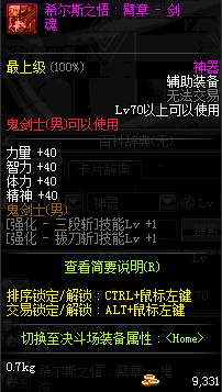 | 神器 辅助装备-鬼剑士(男) | ||||
