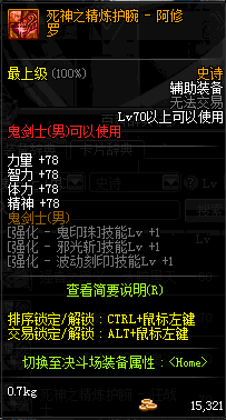 | 70 | 死神之精炼护腕 - 剑魂 | |||