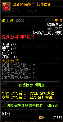| 史诗 辅助装备-鬼剑士(男) | ||||