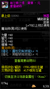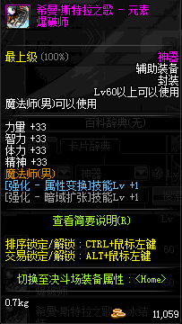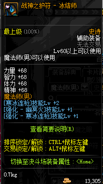 | 辅助装备: | 全职业 鬼剑士 女鬼剑 女格斗 男格斗 神枪手 女枪手 魔法师 男法师 圣职者 暗夜使者 守护者 |