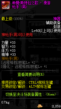 | 鬼剑士 | 神枪手 | 格斗家 | 魔法师 | 圣职者 | 暗夜使者 | 布甲 | 皮甲 | 重甲 | 轻甲 | 板甲 | 饰品 |