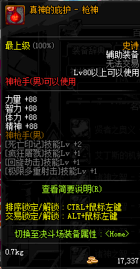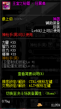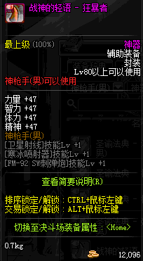| 辅助装备: | 全职业 鬼剑士 女鬼剑 女格斗 男格斗 神枪手 女枪手 魔法师 男法师 圣职者 暗夜使者 守护者 |
