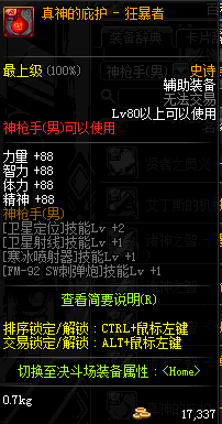 | 史诗 辅助装备- 神枪手(男) | ||||