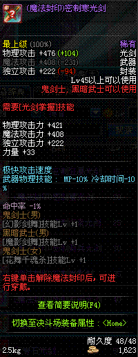 | 45 | (魔法封印)密制寒光剑 | *Lv45~51普通地下城怪物掉落 *完成[罗斯特的破绽]任务 *使用Lv45~51怪物掉落的设计图进行制作 |