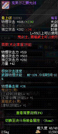 | 55 | 圣物 : 极炎精灵之光影剑 | *Lv53~61普通地下城怪物掉落 |