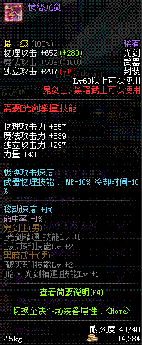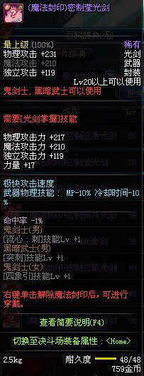 | 15 | (魔法封印)密制狂暴光剑 | *Lv13~21普通地下城怪物掉落 *完成[专职贺礼]任务 |