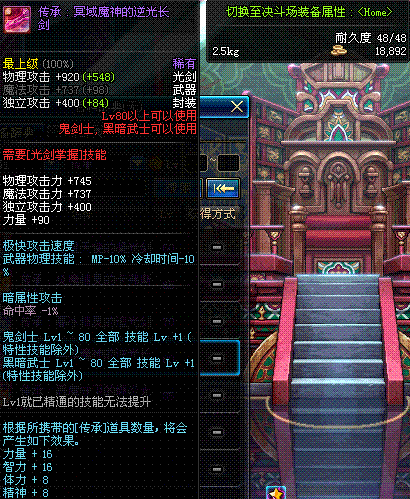 | 80 | 圣物 : 冥域魔神的逆光长剑 | *Lv80~86普通地下城怪物掉落 | ||