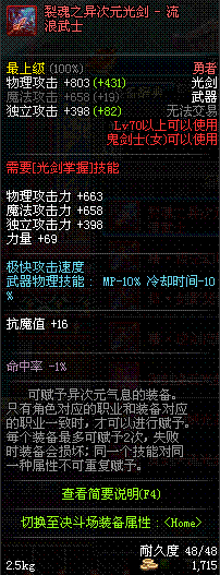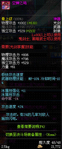 | 辅助装备: | 全职业 鬼剑士 女鬼剑 女格斗 男格斗 神枪手 女枪手 魔法师 男法师 圣职者 暗夜使者 守护者 |