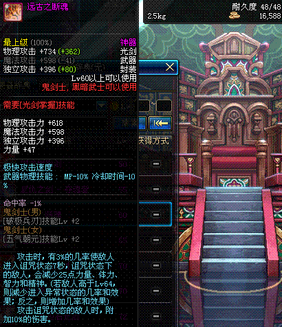 | 60 | 远古之断魂 | *Lv58~66普通地下城怪物掉落 *在加百利的神秘商店购买 |