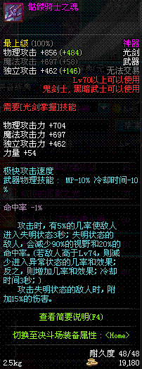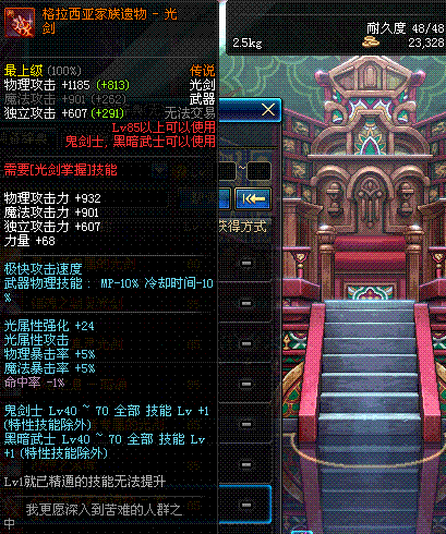 | 70 | 天痕秘印光剑 | *Lv70~76普通地下城怪物掉落 *在加百利的神秘商店购买 |